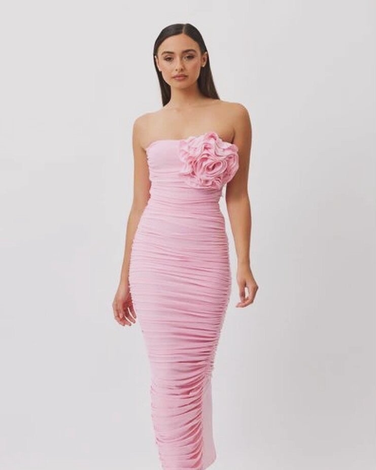 Description : Faites sensation lors de vos événements avec cette robe de soirée sans bretelles. Dotée d’un détail floral tsur le corsage, cette robe est parfaite pour celles qui veulent se démarquer avec élégance. La coupe ajustée et la couleur vibrante ajoutent une touche de sophistication et de glamour à votre tenue.