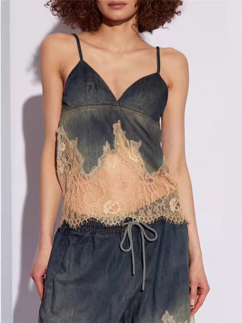 Description : Cette pièce unique combine le style décontracté du denim avec l’élégance de la dentelle. Le bas de la tenue ressemble à un short en denim, tandis que le haut est orné de détails en dentelle, créant un look à la fois casual et sophistiqué. Ce vêtement fusionne deux styles distincts pour un résultat audacieux et tendance.