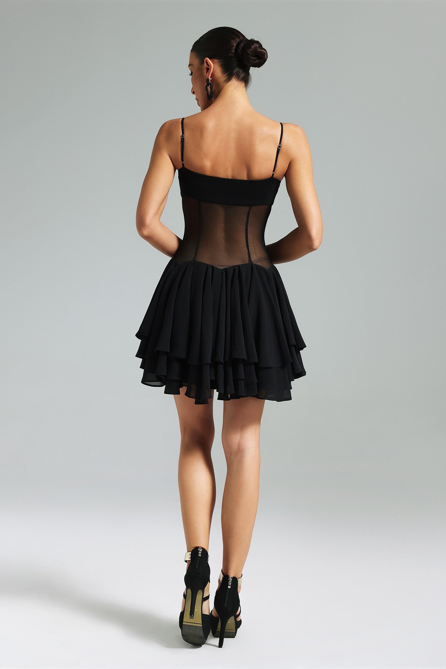 Description : Apportez une touche de romantisme à votre garde-robe avec cette robe élégante, dotée de bretelles spaghetti et d’une jupe évasée. Le corsage, orné de dentelle ou de panneaux transparents, ajoute une note sensualité à cette tenue parfaite pour des soirées en boîte ou des événements festifs. La jupe évasée offre une silhouette flatteuse et féminine.