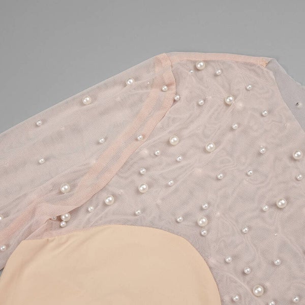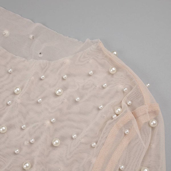 Description : Ce body à manches longues est une pièce élégante et raffinée. Il est confectionné dans un tissu transparent orné de pois et de décorations en perles ou en strass, avec une partie opaque au niveau du buste qui rappelle la forme d’un soutien-gorge. La couleur claire, beige ajoute une touche de douceur et de féminité à ce vêtement.