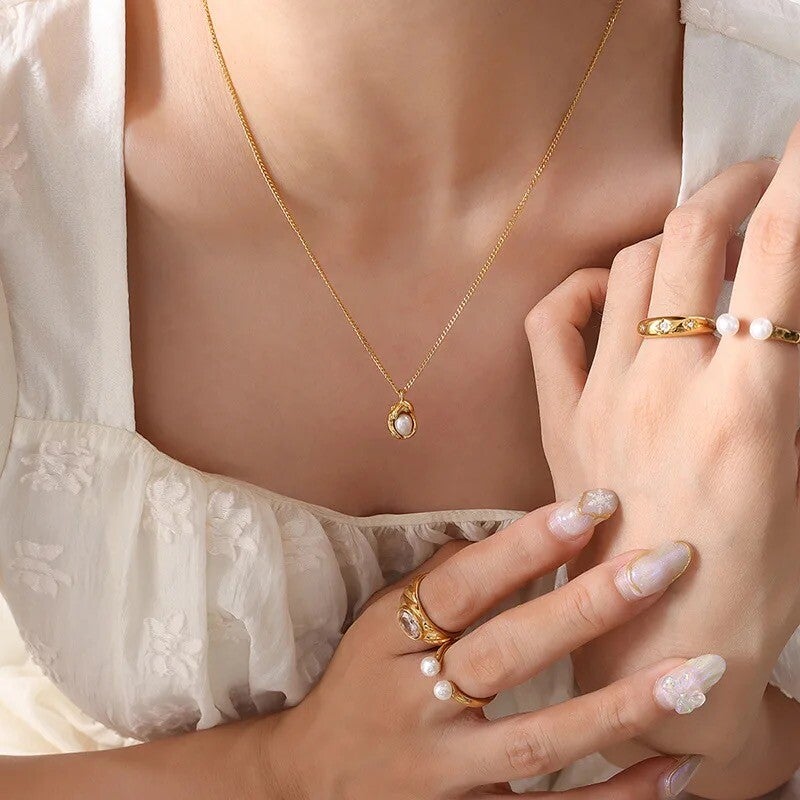 - Matériau : Plaqué or 18 carats, acier inoxydable avec perle