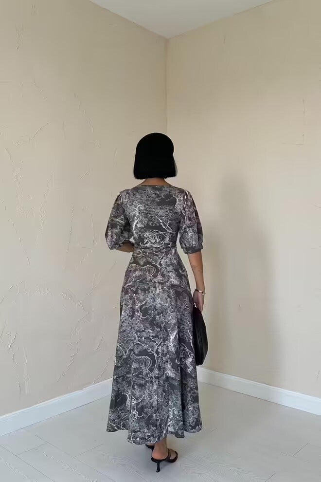Description : Cette robe à motifs est d’une longueur au genou, est parfaite pour ajouter une touche de fraîcheur et de féminité à votre garde-robe. Les manches bouffantes apportent du volume et une touche romantique à la tenue.