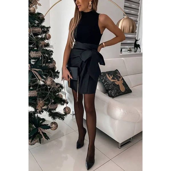 Description : Cette robe noire élégante est agrémentée d’un détail de nœud à la taille, ajoutant une touche de sophistication et de féminité. La robe est parfaite pour des occasions spéciales où l’élégance est de mise.