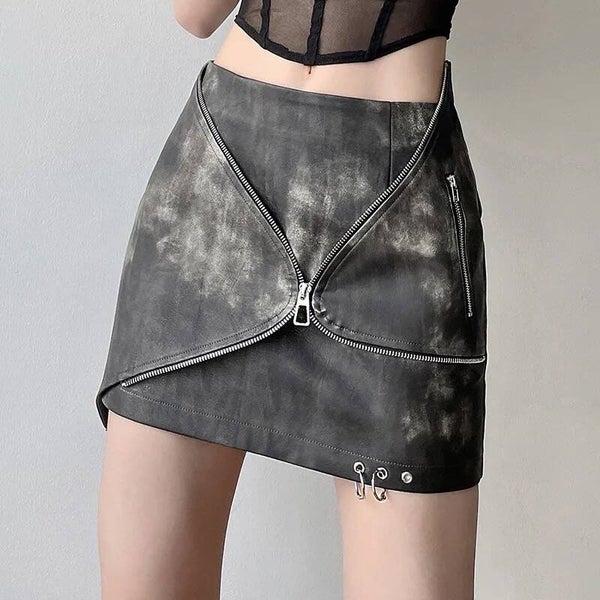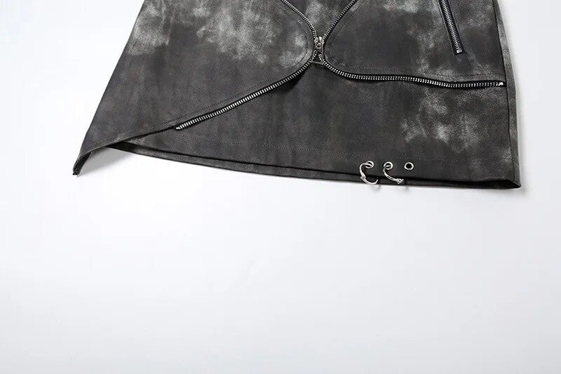 Description : Cette jupe en cuir avec un design asymétrique et des fermetures éclair est un choix audacieux et moderne. La jupe présente une finition texturée, peut-être lavée ou usée, qui ajoute du caractère à la pièce. La fermeture éclair principale traverse le devant en diagonale, créant une fermeture non conventionnelle qui renforce l’esthétique edgy de la jupe. Un autre détail de fermeture éclair, plus petit et horizontal, peut servir de poche ou être purement décoratif.
