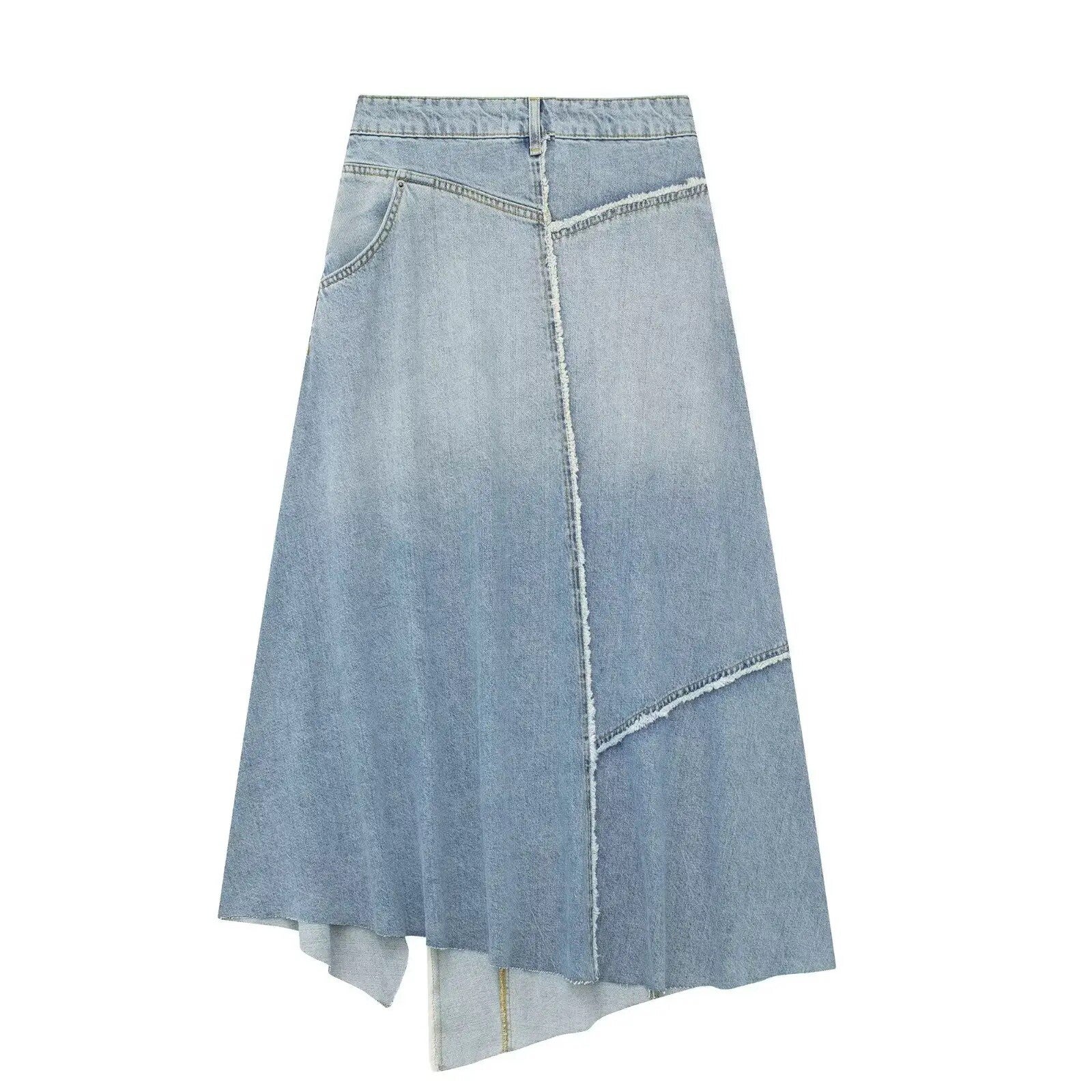 - Détails : Design asymétrique, éléments de jeans, finition déstructurée