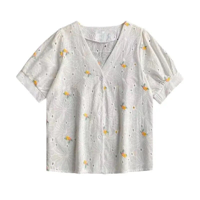 Chemise à manches courtes avec des broderie de fleurs