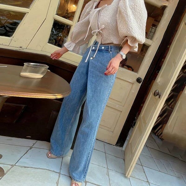 Jean à jambes larges irrégulières, pantalon droit en Denim