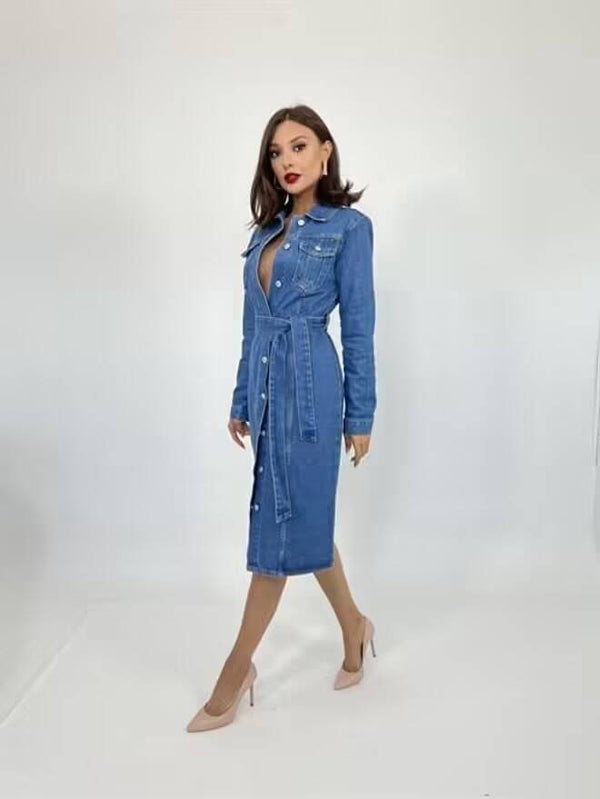 Description : Découvrez notre élégante robe en denim, parfaite pour un look chic et décontracté. Cette robe polyvalente est idéale pour toutes les occasions, que ce soit pour une sortie entre amis ou une journée au bureau.