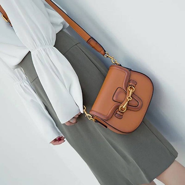 Description : Ce sac à bandoulière en cuir est un accessoire élégant et pratique. Il est doté d’un fermoir en métal doré à l’avant, d’un fond incurvé, d’un rabat et d’une sangle ajustable avec des attaches en métal doré. Ce design moderne en fait un choix parfait pour diverses occasions.