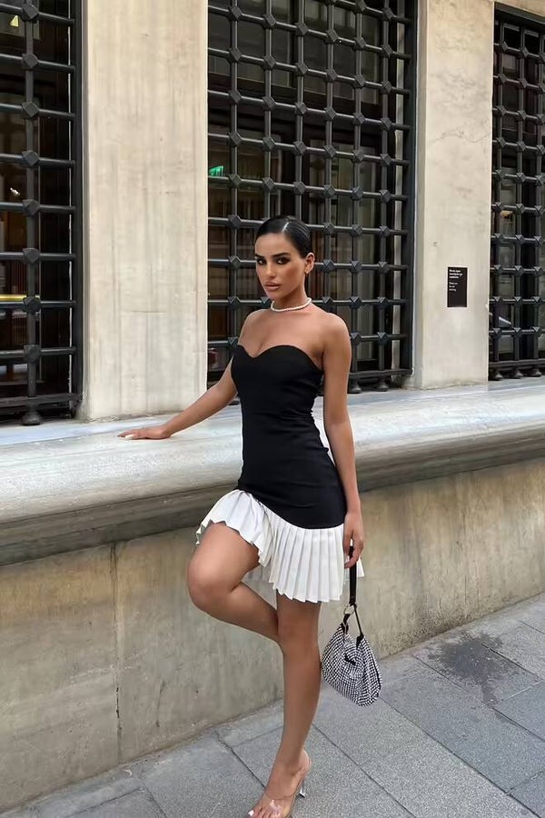 Mini robe sans bretelles à encolure en cœur
