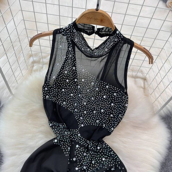 - Détails : Haut en mesh transparent. Détails en strass scintillant