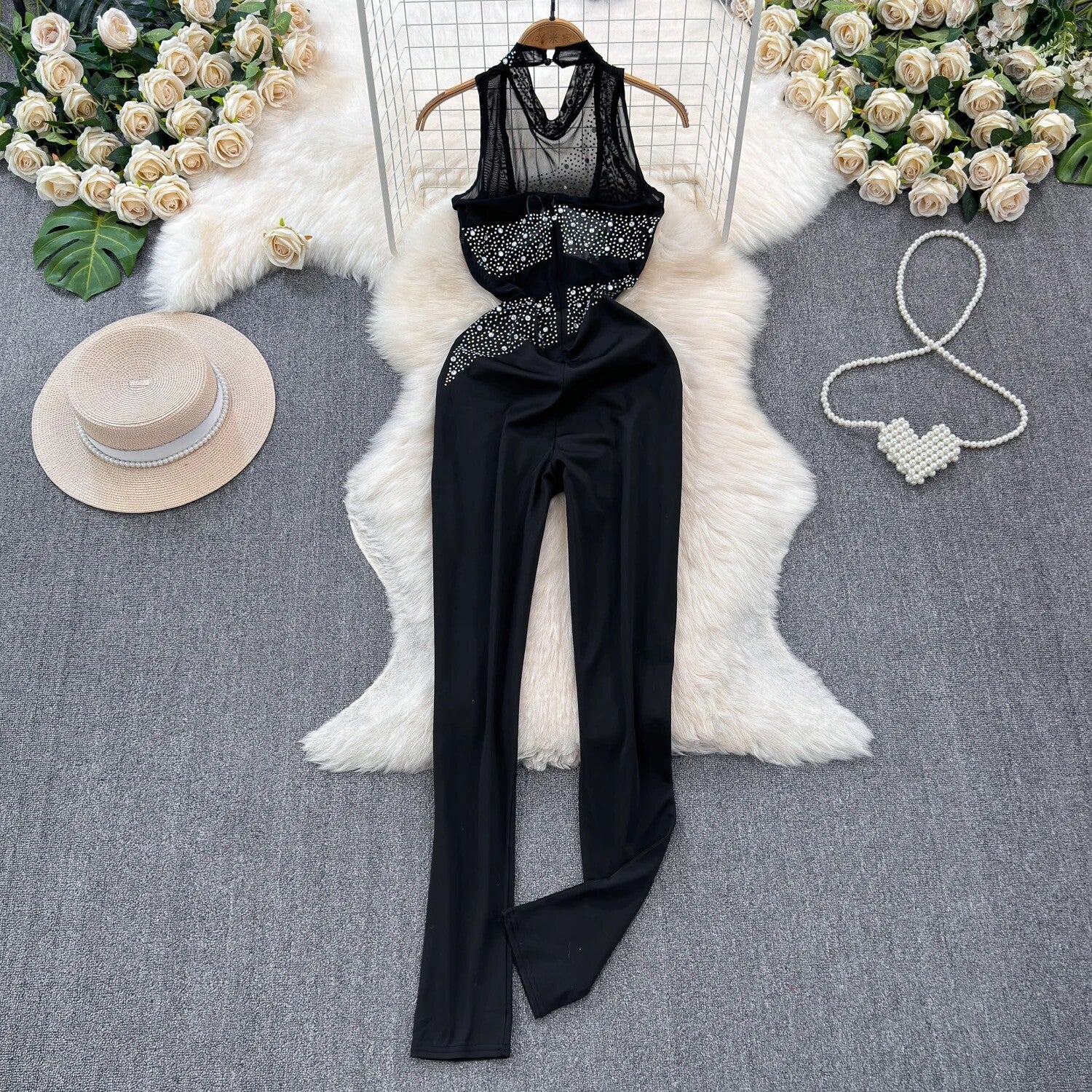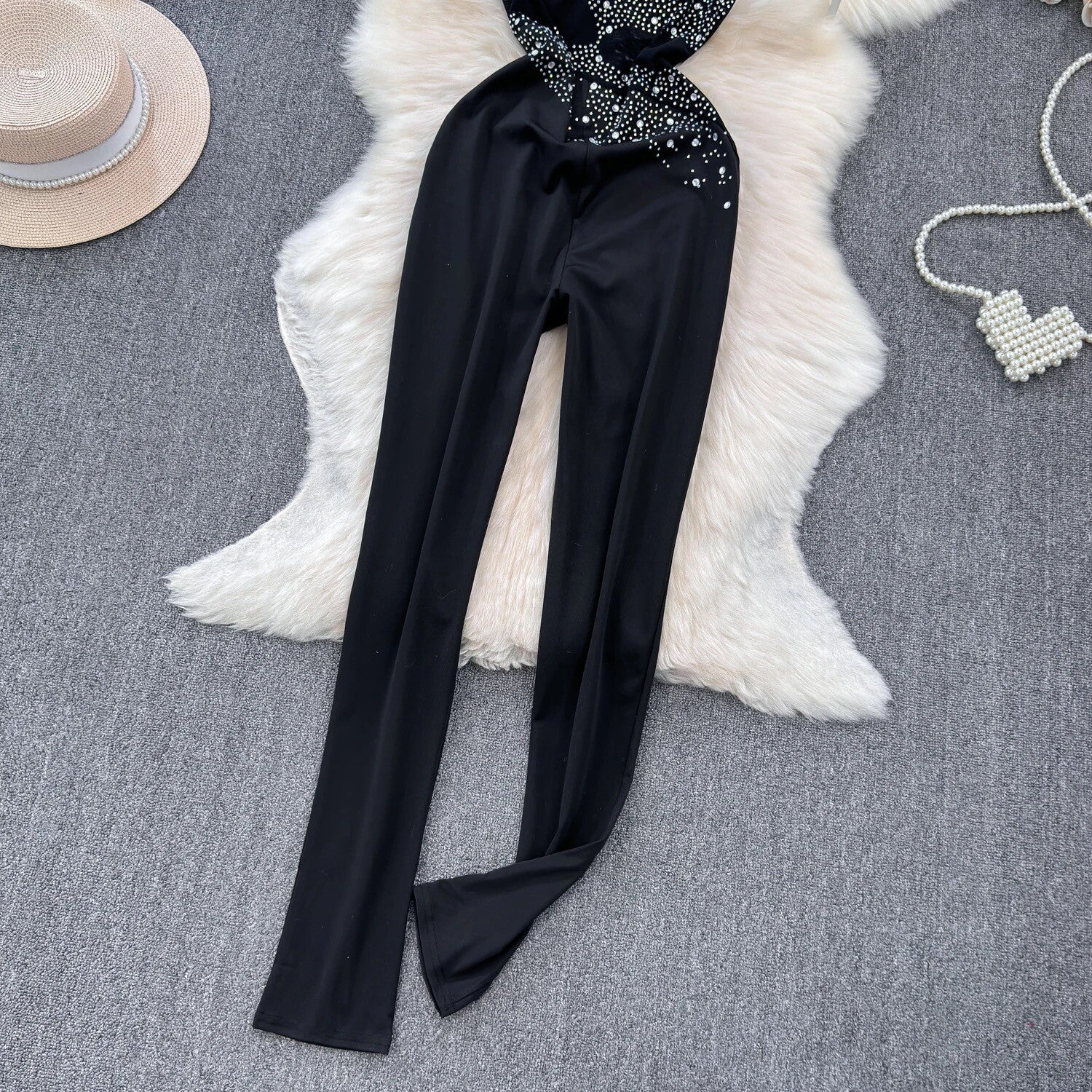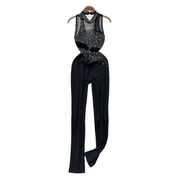 Combinaison noir Glamour avec détails en strass