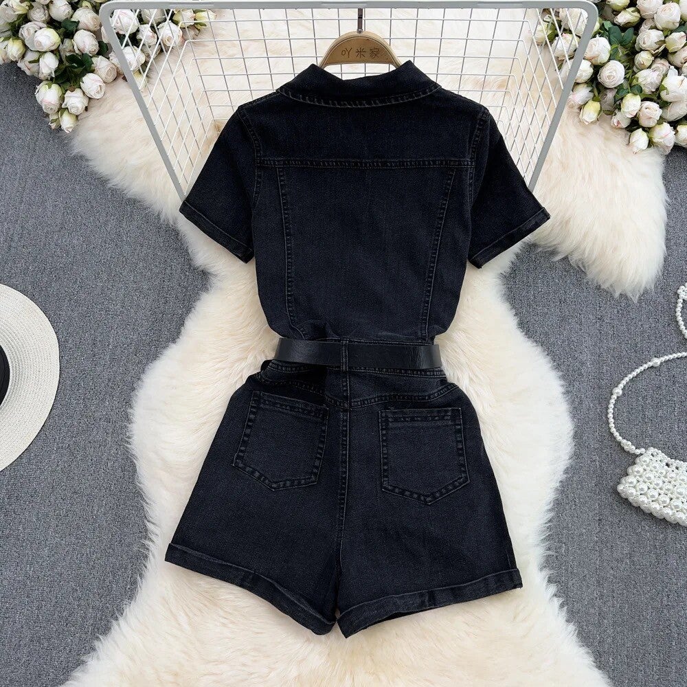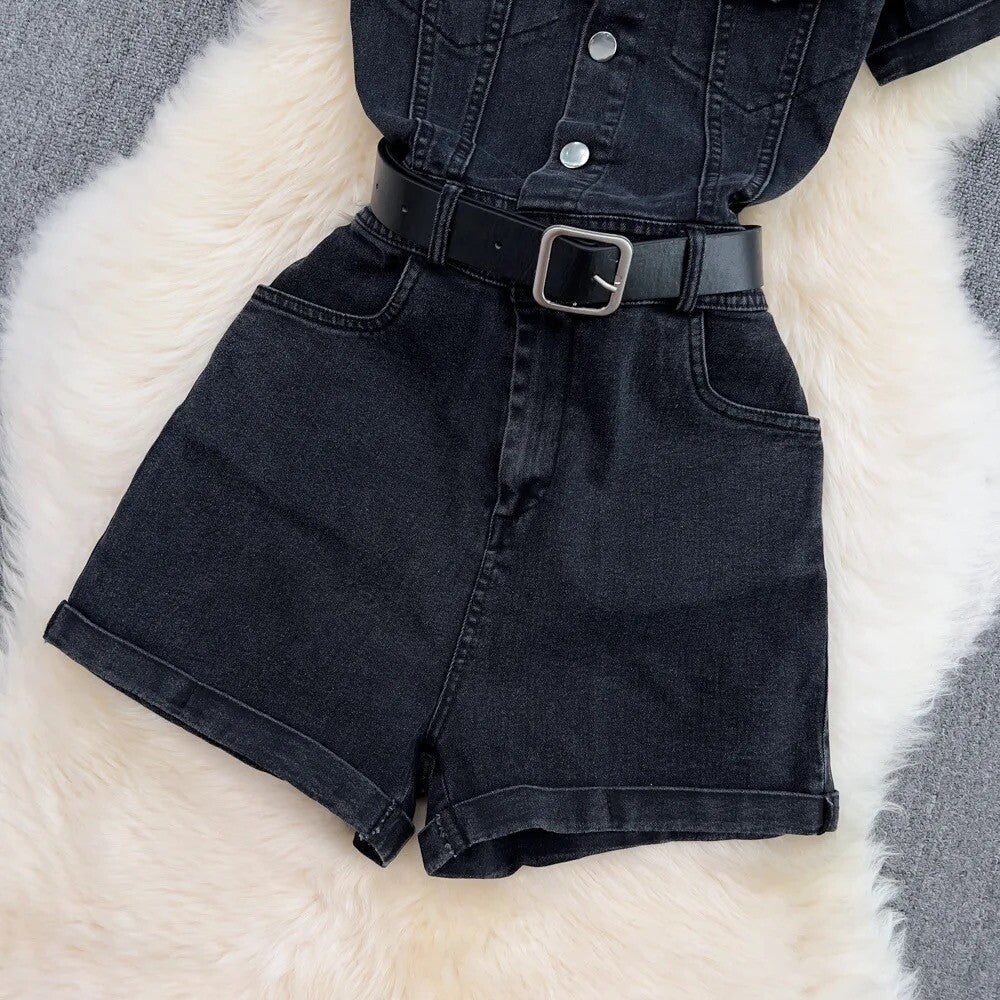 Description : Optez pour un style audacieux avec cette combishort en Denim noir idéal pour un look urbaine et branché. Confectionné dans un denim robuste mais confortable, cette pièce arbore des boutons argentés à l'avant et des poches poitrines pour une touche utilitaire.