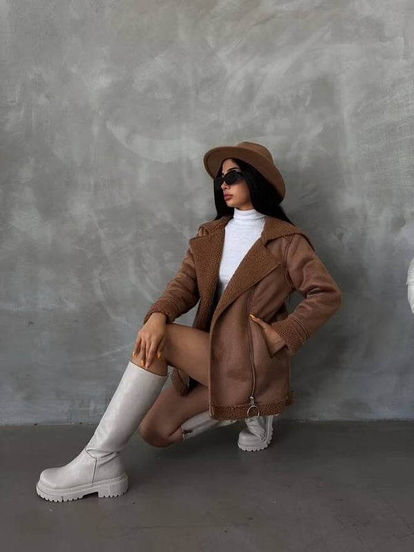 Description : Ajoutez une touche de sophistication rebelle à votre garde-robe avec cette veste en suédine doublée en fausse fourrure. Son design oversize et ses détails soignés apportent une allure à la fois chic et décontractée. Idéale pour les journées fraîches, elle se marie parfaitement avec une jupe en jean ou un pantalon ajusté. Confort et style en un clin d'œil, cette pièce incontournable vous garantit un look affirmé et tendance.